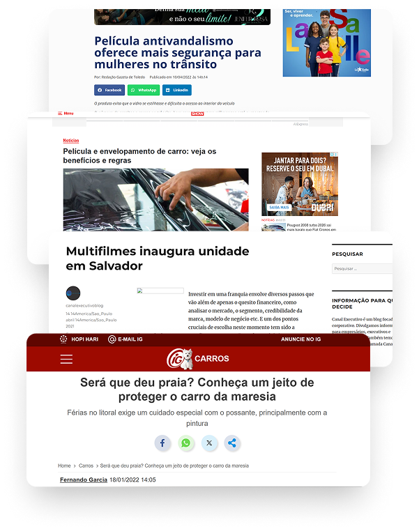 Referência em películas de alto padrão, a Multifilmes oferece proteção solar, segurança e estética para veículos e ambientes residenciais. Nossos produtos proporcionam mais conforto térmico e proteção diária. Soluções modernas que unem tecnologia, conforto e sofisticação.